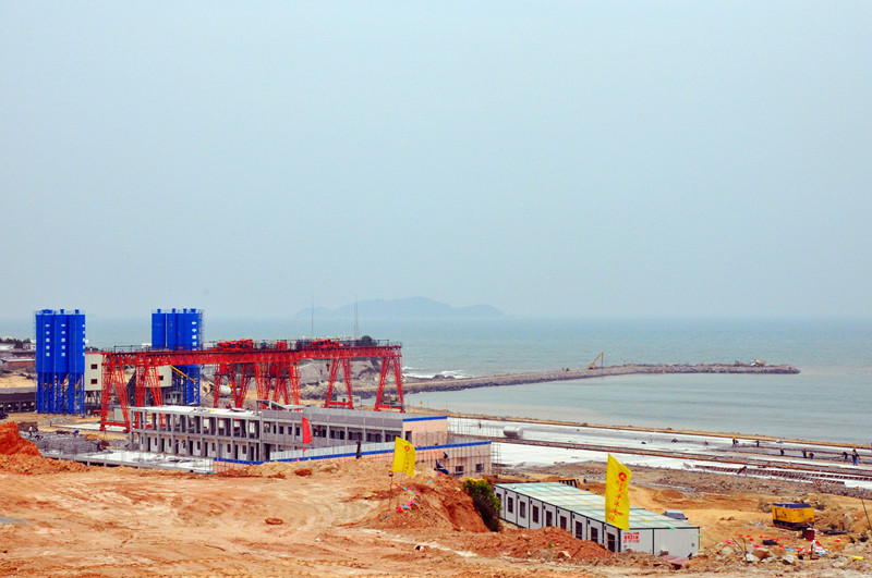 東防波堤工程全長5423米,西防波堤工程全長3315米,口門寬度600米?陂T堤頭段采用直立式沉箱結(jié)構(gòu),其他堤身段采用拋石斜坡堤結(jié)構(gòu),共需拋填各類石料1060萬m3,澆筑混凝土82.6萬 m3,項目總投資為25.45億元,建安費17.94億元。東西防波堤建成后,形成港池面積6平方公里,岸線10850米,可建3-30萬噸級泊位30-35個,設計吞吐量2億噸。