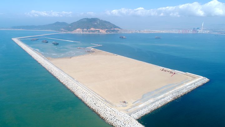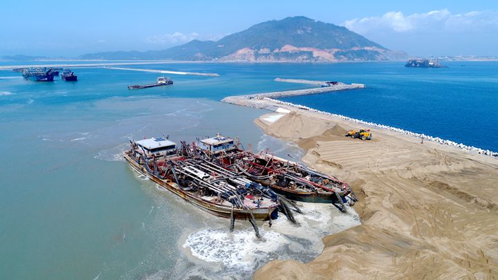 現(xiàn)場(chǎng)所見(jiàn),大型抽沙作業(yè)船開(kāi)足馬力,往來(lái)穿梭作業(yè)。據(jù)悉,粵西LNG造陸項(xiàng)目已形成陸域面積400畝,項(xiàng)目初現(xiàn)規(guī)模。