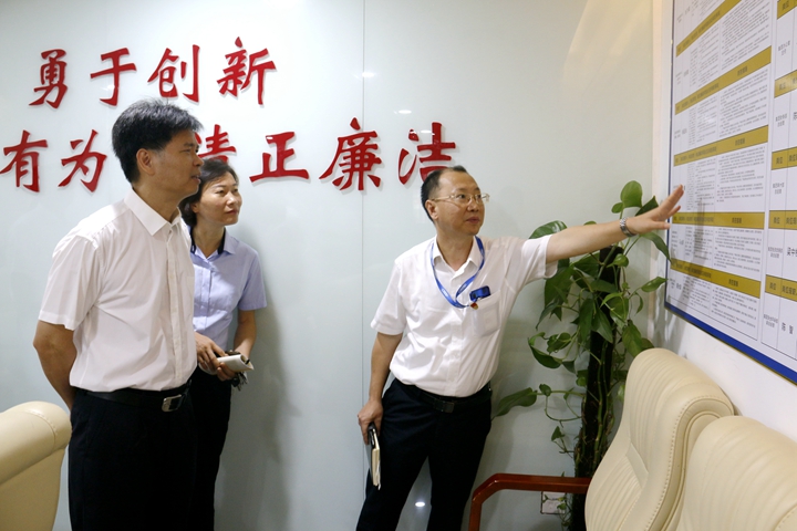 座談會(huì)上,陳軍對(duì)調(diào)研組一行表示歡迎。他表示,集團(tuán)黨委高度重視黨風(fēng)廉政建設(shè)工作,著力營(yíng)造風(fēng)清氣正創(chuàng)業(yè)工作環(huán)境。當(dāng)前,集團(tuán)紀(jì)委按照市紀(jì)委部署和集團(tuán)黨委要求,認(rèn)真貫徹落實(shí)《關(guān)于推進(jìn)<茂名市管企業(yè)紀(jì)檢監(jiān)察體制改革的實(shí)施方案>的通知》文件精神,扎實(shí)開展集團(tuán)紀(jì)檢監(jiān)察體制改革工作,一是健全黨風(fēng)廉政建設(shè)和反腐的工作機(jī)制,結(jié)合集團(tuán)紀(jì)檢監(jiān)察體制改革實(shí)際,成立黨風(fēng)廉政和反腐工作協(xié)調(diào)小組;二是建立聯(lián)動(dòng)監(jiān)督工作機(jī)制,加強(qiáng)集團(tuán)重點(diǎn)項(xiàng)目關(guān)鍵環(huán)節(jié)的監(jiān)督,緊盯各項(xiàng)目建設(shè)關(guān)鍵環(huán)節(jié),防止“暗箱操作”,確保重點(diǎn)項(xiàng)目的高效推進(jìn);三是加強(qiáng)對(duì)干部的廉政監(jiān)督管理,集團(tuán)紀(jì)檢監(jiān)察室通過建立中層以上干部廉政檔案,教育引導(dǎo)黨員干部自覺接受組織監(jiān)督管理;四是嚴(yán)格落實(shí)提拔任用干部征求紀(jì)委意見的要求,嚴(yán)格按照《黨政領(lǐng)導(dǎo)干部選拔任用工作條例》精神,結(jié)合集團(tuán)人力資源工作實(shí)際,秉持“有為有位”選人用人的原則;五是堅(jiān)持開展廉政談話教育機(jī)制,紀(jì)委堅(jiān)持每個(gè)季度對(duì)各個(gè)重點(diǎn)項(xiàng)目開展廉政談話工作,抓住“關(guān)鍵少數(shù)”,與招投標(biāo)等特殊敏感崗位人員進(jìn)行廉政談話并簽訂《廉政從業(yè)責(zé)任書》;六是建立紀(jì)檢監(jiān)察工作聯(lián)絡(luò)員機(jī)制,發(fā)揮上下聯(lián)動(dòng)作用,形成監(jiān)督合力,確保監(jiān)督責(zé)任落實(shí)到位。
