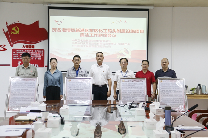 5月20日,根據集團黨委工作部署,集團紀委與茂名港博賀新港區(qū)東區(qū)化工碼頭附屬設施工程項目施工單位中石化五建華南分公司和監(jiān)理單位廣東國信工程監(jiān)理集團共同召開廉潔工作聯席會議,標志著項目廉政工作聯動會商機制正式建立。集團黨委委員、紀委書記、監(jiān)察專員陳軍主持會議,各參建單位分管紀檢監(jiān)察工作領導、項目負責人、關鍵崗位人員近20人參加了本次會議。