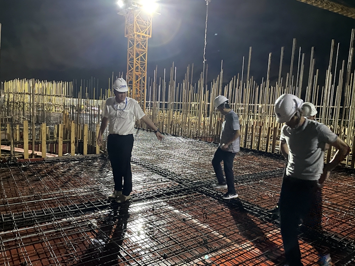 梁板的澆筑必須進(jìn)行連續(xù)施工方能保證質(zhì)量。由于施工作業(yè)面廣、作業(yè)時(shí)序長(zhǎng),茂名港務(wù)中心項(xiàng)目經(jīng)理部組織參建單位作了充分的施工交底,進(jìn)行了作業(yè)前各前置工序的復(fù)查,要求保質(zhì)保量完成每一道施工工序,并強(qiáng)調(diào)了夜間作業(yè)安全措施、輪班換班要求;提前與混凝土供應(yīng)商進(jìn)行溝通聯(lián)系,做足了材料準(zhǔn)備,確保現(xiàn)場(chǎng)澆筑工作的連續(xù)性。
