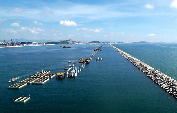 自今年7月11日安裝首個沉箱以來,茂名港集團東區(qū)油品碼頭項目部與各參建單位圍繞沉箱安裝這一碼頭建設(shè)的“大”難題,時刻跟蹤施工水域氣象動態(tài),精心收集整理潮位數(shù)據(jù),克服過往漁船頻繁及涌浪頻發(fā)等不利因素,高效合理利用有效潮作業(yè)工期,積極統(tǒng)籌,對每個沉箱安裝都制定了詳細的作業(yè)計劃和預(yù)案,安全高效地將12個沉箱全部安裝完成! 沉箱全部安裝完成是東區(qū)油品碼頭建設(shè)的重要里程碑,標(biāo)志著項目建設(shè)邁出最堅實一步,也為東區(qū)油品碼頭高質(zhì)量建設(shè)奠定堅實的基礎(chǔ)。(鐘春林) |