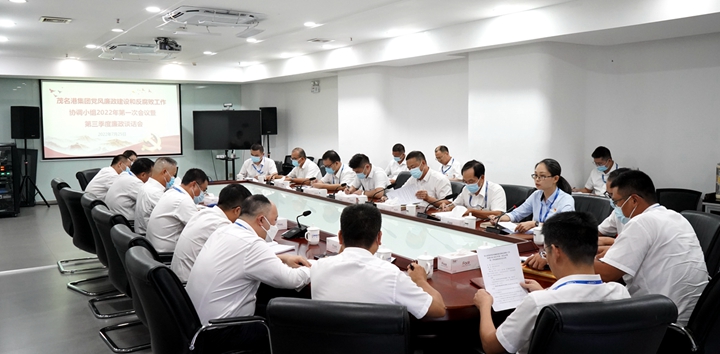 7月25日,集團(tuán)紀(jì)委組織召開茂名港集團(tuán)黨風(fēng)廉政建設(shè)和反腐敗工作協(xié)調(diào)小組2022年第一次會(huì)議暨第三季度廉政談話會(huì)議。集團(tuán)黨委委員、紀(jì)委書記、監(jiān)察專員陳軍出席會(huì)議并講話,集團(tuán)黨委委員、總工程師蔡光章,集團(tuán)副總裁朱廣宇參加會(huì)議,集團(tuán)紀(jì)委副書記、紀(jì)檢監(jiān)察室主任馮藝藝主持會(huì)議。集團(tuán)紀(jì)委委員、機(jī)關(guān)各部室、各下屬企業(yè)主要負(fù)責(zé)人、紀(jì)檢監(jiān)察聯(lián)絡(luò)員代表近30人參加會(huì)議。