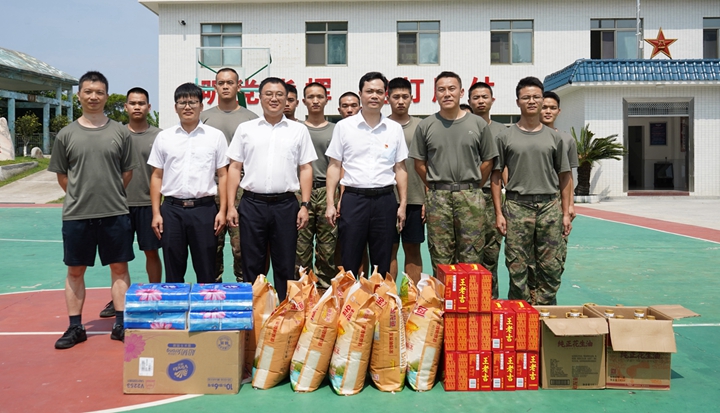 7月30日,根據(jù)集團(tuán)黨委工作部署,集團(tuán)黨委副書記、總裁肖炳璋率隊(duì)到蓮頭嶺某部開展“八一”建軍節(jié)擁軍慰問活動(dòng),向部隊(duì)官兵致以節(jié)日的祝福和誠(chéng)摯的問候。 慰問中,肖炳璋與官兵們親切交談,詳細(xì)詢問了官兵的日常生活、學(xué)習(xí)和執(zhí)勤訓(xùn)練情況,對(duì)他們?yōu)槊?jīng)濟(jì)社會(huì)發(fā)展作出的重大貢獻(xiàn)表示衷心感謝和崇高敬意。他表示,茂名港集團(tuán)的快速發(fā)展,離不開駐地部隊(duì)的有力支持。集團(tuán)將一如既往地關(guān)心和支持軍隊(duì)建設(shè),用心用情用力做好擁軍優(yōu)屬工作。他希望,雙方不斷加強(qiáng)溝通交流,推動(dòng)軍民融合深度發(fā)展,打造和諧穩(wěn)定的優(yōu)良港口營(yíng)商環(huán)境,攜手共同應(yīng)對(duì)當(dāng)前復(fù)雜的經(jīng)濟(jì)形勢(shì)和多重困難挑戰(zhàn),共同譜寫新時(shí)代雙擁工作新篇章。