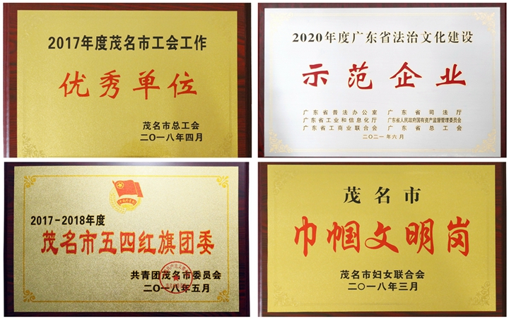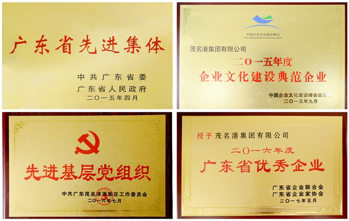 ▲集團(tuán)榮譽(yù)獎(jiǎng)牌(摘選) 幾年來(lái),集團(tuán)工會(huì)榮獲“茂名市工會(huì)工作優(yōu)秀單位”稱(chēng)號(hào),集團(tuán)財(cái)務(wù)部女職工榮獲“茂名市巾幗文明崗”稱(chēng)號(hào);集團(tuán)團(tuán)委成立青年志愿者服務(wù)隊(duì),助力雙創(chuàng)工作,連續(xù)三年榮獲“茂名市五四紅旗團(tuán)委”稱(chēng)號(hào)。集團(tuán)憑借系列企業(yè)文化建設(shè)成果,先后榮獲 “中國(guó)企業(yè)文化建設(shè)典范企業(yè)”“廣東省先進(jìn)集體”“廣東省優(yōu)秀企業(yè)”“廣東省企業(yè)文化建設(shè)最佳實(shí)踐單位”“廣東省法治文化建設(shè)示范企業(yè)”等榮譽(yù),被譽(yù)為茂名市屬?lài)?guó)有企業(yè)的標(biāo)桿與典范。 結(jié)語(yǔ) 十年積跬步,足下至千里;仨甑姆欠舱鞒,茂名港人矢志艱苦奮斗,勇于擔(dān)當(dāng)作為,爭(zhēng)當(dāng)茂名向海而興排頭兵,在茂名經(jīng)濟(jì)發(fā)展史上留下堅(jiān)實(shí)的足印。
