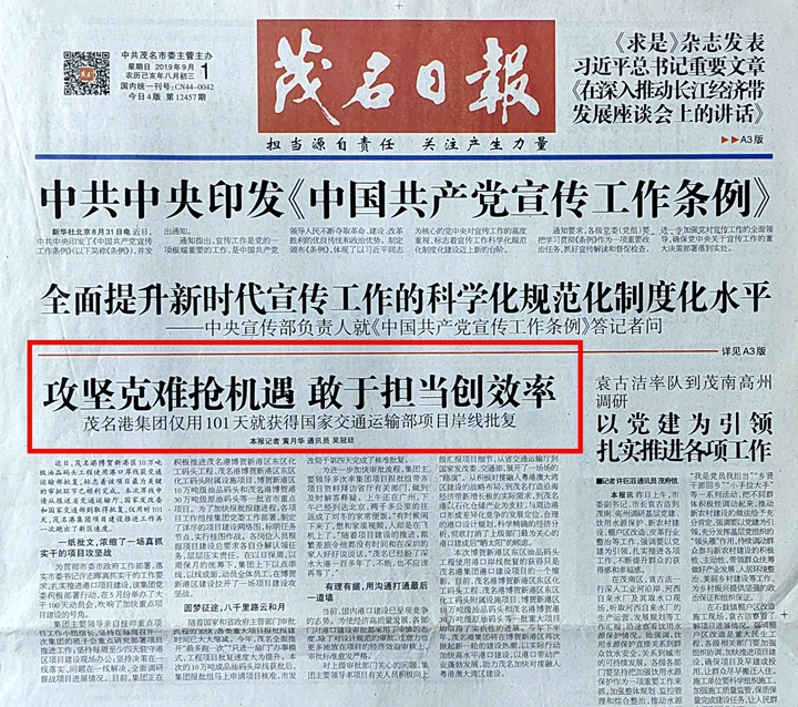 “那時(shí)候覺(jué)得挺艱難的,現(xiàn)在回想,卻是充滿了甘甜!劉冬回憶起當(dāng)年的“101天”的故事。在2019年3月底,茂名港博賀新港區(qū)總體規(guī)劃獲得批復(fù),吹響了集團(tuán)工程大建設(shè)的號(hào)角,集團(tuán)立即啟動(dòng)化工碼頭、油品碼頭的岸線申請(qǐng)、立項(xiàng)報(bào)批等工作。劉冬跟隨著集團(tuán)領(lǐng)導(dǎo)小組的周密部署,多次率集團(tuán)項(xiàng)目報(bào)批組帶齊項(xiàng)目資料拜訪省廳有關(guān)部門(mén),做到及時(shí)解答釋疑。在報(bào)審的過(guò)程中,為了使各項(xiàng)報(bào)批報(bào)建工作加快推進(jìn),劉冬帶齊資料主動(dòng)拜訪有關(guān)部門(mén),多次到國(guó)家交通部、省交通廳、省生態(tài)環(huán)境廳、省自然資源廳、市交通局等相關(guān)部門(mén)積極溝通協(xié)調(diào),隨時(shí)做好解答匯報(bào)。如在設(shè)計(jì)上,在沒(méi)有取得立項(xiàng)之前,先召開(kāi)內(nèi)部審查會(huì),先讓專(zhuān)家發(fā)現(xiàn)問(wèn)題,提前修正初步設(shè)計(jì)、施工圖設(shè)計(jì)的內(nèi)容,大大縮短了今后正式審批的時(shí)間。與設(shè)計(jì)無(wú)縫對(duì)接,急迫的文件,安排專(zhuān)人坐高鐵或者蹲點(diǎn)設(shè)計(jì)院,以最快速度取得成果。終于,在多方努力下,僅用時(shí)101天,拿到了東區(qū)油品碼頭的岸線批復(fù),創(chuàng)造了茂名的岸線批復(fù)史的一個(gè)歷史,得到了交通部、省交通廳的一致好評(píng)。 “茂名已經(jīng)盼了深水大港一百多年了,不能,也不應(yīng)該再等了!長(zhǎng)期的奔走,讓劉冬總結(jié)出了一套工作方法——“普遍+靶向”工作法:即先普遍后攻堅(jiān)的各個(gè)擊破方式,明確主攻方向和核心突破口,并像釘子一樣深深地楔進(jìn)每一個(gè)關(guān)鍵環(huán)節(jié)。“方法很笨,但是很奏效。”劉冬謙虛地介紹道“工作關(guān)鍵是溝通,溝通的關(guān)鍵在高效的往來(lái)反饋”。幾年下來(lái),劉冬在這套工作方法的支持下,參與推動(dòng)博賀新港區(qū)東西防波堤、化工碼頭建設(shè)、30萬(wàn)噸原油碼頭等項(xiàng)目的報(bào)批報(bào)建、茂名港口岸擴(kuò)大開(kāi)放等工作圓滿落地。
