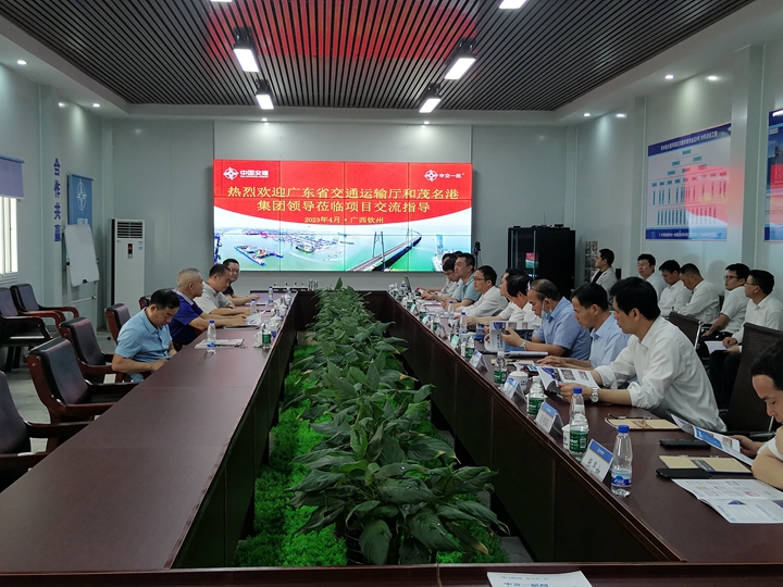 4月19日至20日,受廣東省交通運輸廳邀請,集團黨委副書記、總裁肖炳璋率隊?wèi)?yīng)邀到廣西欽州港調(diào)研中交一航局“平安百年品質(zhì)工程”重點示范工程大欖坪9#、10#泊位建設(shè)工程。集團黨委委員、總工程師蔡光章,相關(guān)部室及茂名港博賀新港區(qū)30萬噸級原油碼頭工程參建方陪同交流學(xué)習(xí)。