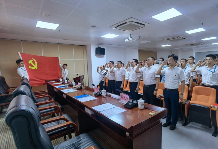 在表彰大會上,面對鮮紅的黨旗,全體黨員面向鮮艷的黨旗舉起右拳,莊嚴(yán)宣誓,回顧對黨和人民的承諾,進(jìn)一步錘煉對黨的絕對忠誠品格。