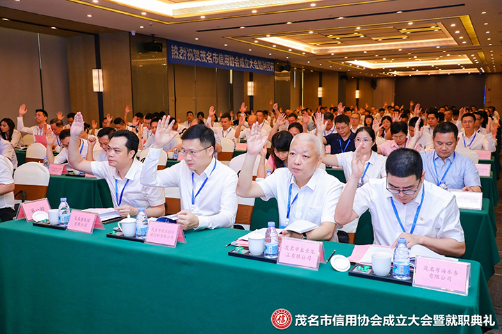 活動當(dāng)天,全體會員聽取了茂名市信用協(xié)會籌備工作報告,審議通過了《茂名市信用協(xié)會章程》、《茂名市信用協(xié)會會費繳納及使用管理辦法》和《茂名市信用協(xié)會第一屆第一次會員大會選舉辦法》,并選舉了理事會和監(jiān)事會成員。