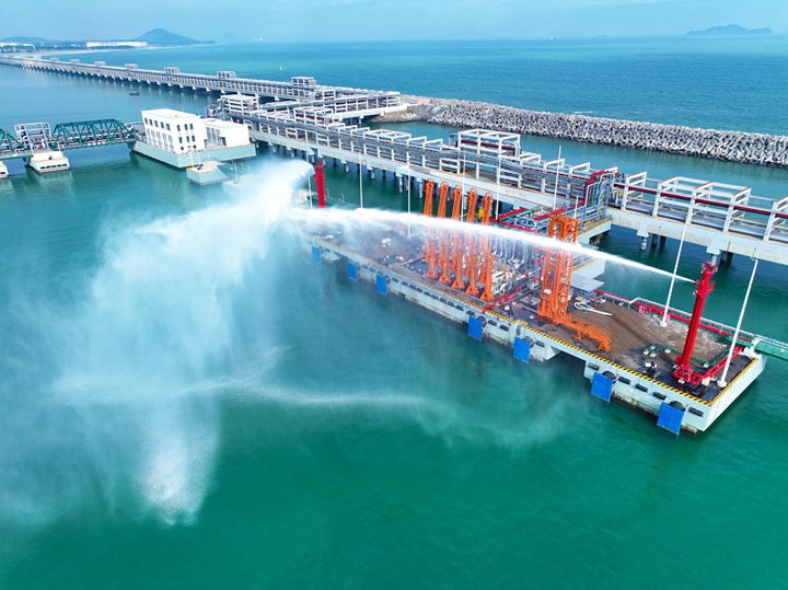 2023年12月27日,隨著8條“水龍”噴涌而出,博賀新港區(qū)東區(qū)化工碼頭消防系統(tǒng)聯(lián)運調(diào)試工作取得圓滿成功,這標志著繼油品碼頭之后,茂名港集團化工碼頭也完成了由項目建設轉向生產(chǎn)運營的關鍵一環(huán)。