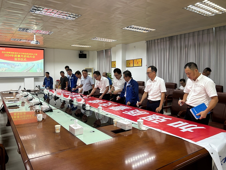 9月2號(hào),茂名港博賀新港區(qū)30萬(wàn)噸級(jí)原油碼頭工程召開(kāi)了2024年“質(zhì)量月”活動(dòng)啟動(dòng)儀式。會(huì)議由茂名港博賀新港區(qū)30萬(wàn)噸級(jí)原油碼頭項(xiàng)目經(jīng)理部(以下簡(jiǎn)稱(chēng)原油碼頭項(xiàng)目經(jīng)理部)經(jīng)理梁祖釗主持召開(kāi),原油碼頭項(xiàng)目經(jīng)理部、中交一航局第二工程有限公司(以下簡(jiǎn)稱(chēng)施工單位)、廣州港工程管理有限公司(以下簡(jiǎn)稱(chēng)監(jiān)理單位)等參建單位參加了本次啟動(dòng)儀式。
