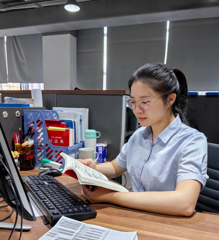 敢于擔當,責任在肩 作為法務人員,她認為不僅要為集團提供專業(yè)的法律支持,更要為集團的穩(wěn)健發(fā)展保駕護航。無論是緊急咨詢,還是大家的日常法律問題,她都積極解答,耐心指導。入職以來,參加了合同評審會、招標文件評審會、邀請供應商評審會、會議材料評審會、專題會等各類會議上百次,參與起草并印發(fā)了三份制度,共同為公司的高質量發(fā)展提供法律保障。當遇到復雜的法律問題時,她總能想盡各種辦法去克服,如積極查閱資料、請教領導和同事及主動尋求法律顧問律師的意見,將書本上深厚的法學理論知識與集團生產經營活動緊密結合,用實際行動詮釋著對職業(yè)的敬畏與尊重。