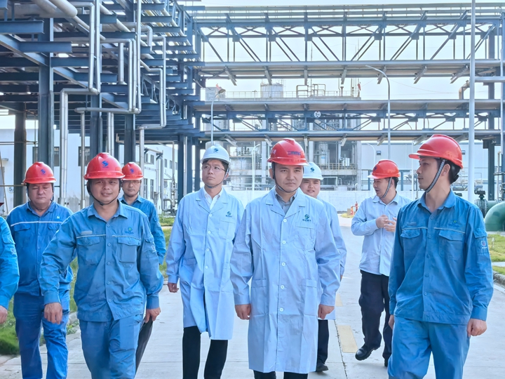 在實華公司副總經理劉一輝、安全總監(jiān)梁培松及湛江實華公司總經理藍建成陪同下,王志華在湛江實華深入辦公區(qū)、化驗中心、中控室、裝卸區(qū)、碳九裝置和雙氧水裝置現(xiàn)場,查看、了解生產運行情況,并與湛江實華經營班子、一線生產人員進行親切交流。