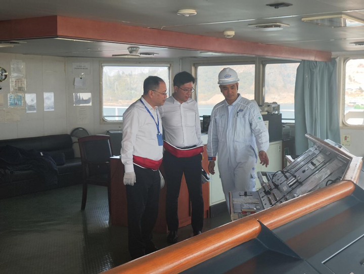 中遠海運能源公司副總經(jīng)理秦炯、中遠海運能源公司油輪事業(yè)部副總經(jīng)理陳俊偉等一行在茂名港集團副總裁李昱祺的陪同下,來到停靠在茂名港集團東區(qū)化工碼頭E12泊位的“遵義潭”油輪上慰問船員,中遠海運能源公司廣州中心副總經(jīng)理施偉民與茂名港集團商務(wù)部負(fù)責(zé)人等陪同慰問。
