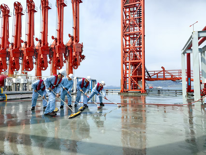 隱患排查小組深入碼頭各個(gè)角落,對(duì)設(shè)備設(shè)施進(jìn)行“地毯式”檢查。他們仔細(xì)查看輸油臂、凸輪泵以及消防設(shè)施等,不放過(guò)任何細(xì)微之處。團(tuán)員青年們憑借扎實(shí)專業(yè)知識(shí),敏銳發(fā)現(xiàn)潛在安全隱患,并及時(shí)記錄匯報(bào),為碼頭安全運(yùn)營(yíng)筑牢防線;衛(wèi)生清潔小組分工明確,有序清理碼頭垃圾與雜物。有的青年負(fù)責(zé)沖洗地面,有的用拖把掃把進(jìn)行清潔。大家齊心協(xié)力,不怕臟累,經(jīng)過(guò)努力,碼頭環(huán)境煥然一新,為新春增添了一份整潔與清新。