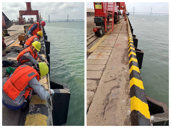 在日常安全巡查中,發(fā)現(xiàn)港口經(jīng)營公司萬噸級碼頭前沿?cái)r水坎,出現(xiàn)局部混凝土損壞、鋼筋裸露的情況,若不及時(shí)修復(fù),將對海洋安全產(chǎn)生環(huán)境污染。按常規(guī)流程,該項(xiàng)修復(fù)工作費(fèi)用高、工期長且需外委專業(yè)施工隊(duì),但公司黨支部在“書記項(xiàng)目”推進(jìn)會上明確要求:“在確保安全與質(zhì)量的前提下,能自主完成的絕不外委!”港口經(jīng)營公司黨支部書記劉芳芳主動領(lǐng)題,牽頭組織黨員干部,集結(jié)涵蓋結(jié)構(gòu)工程、機(jī)械維修、安全管理等專業(yè)的黨員技術(shù)骨干,把“硬骨頭”變成“練兵場”。 “攔水坎修復(fù)要兼顧船舶靠泊時(shí)產(chǎn)生的擠壓碰撞力,混凝土配比、鋼筋加固都得精準(zhǔn)!秉h支部組織委員、副總經(jīng)理黎陽生是港口經(jīng)營公司技術(shù)“總工程師”,他帶著黨員維修組白天測量損壞面積、記錄鋼筋變形數(shù)據(jù),晚上研究修復(fù)技術(shù)規(guī)范,反復(fù)驗(yàn)算修復(fù)方案。為節(jié)省成本,他們翻遍倉庫“淘”出閑置的高強(qiáng)度螺紋鋼,自主切割焊接;利用碼頭現(xiàn)有的混凝土攪拌設(shè)備,按實(shí)驗(yàn)配比調(diào)配修補(bǔ)材料,經(jīng)過多次試驗(yàn),最終確定“基層清理+鋼筋網(wǎng)加固+分層澆筑+防水警示涂層”的修復(fù)工藝。