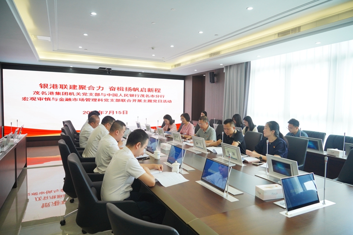 為深入學(xué)習(xí)貫徹習(xí)近平新時代中國特色社會主義思想,進(jìn)一步加強(qiáng)黨建引領(lǐng),推動黨建與業(yè)務(wù)深度融合,7月15日,茂名港集團(tuán)機(jī)關(guān)黨支部與中國人民銀行茂名市分行宏觀審慎與金融市場管理科黨支部、國家外匯管理局茂名市分局黨總支聯(lián)合開展了主題黨日活動。中國人民銀行茂名市分行二級調(diào)研員嚴(yán)青,集團(tuán)黨委委員、副總裁楊超燦以及雙方黨支部書記、黨員代表共20余人參加活動。